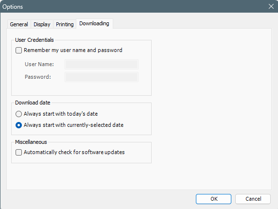 - Automatically check for software updates: if checked, the program will check for a new version of itself upon startup. If a new version is found, you will be prompted to download and install it. If unchecked, you can still check for updates via the Help menu.