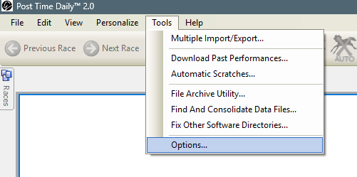 Post Time Daily provides several configurable options. To access these settings, go to the Tools menu and select Options: