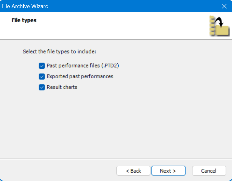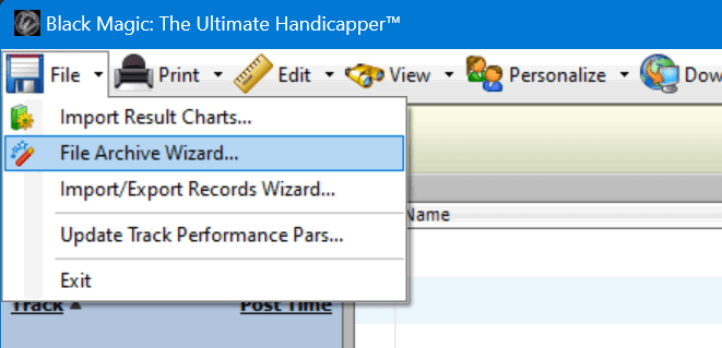 When moving to a new PC, you have the ability to copy your existing data files from your old PC. These files include past performances (.PTD2), result charts, and exported files. We have made this easy with the File Archive Wizard, available in Post Time Daily, Black Magic, and ValueCapper.