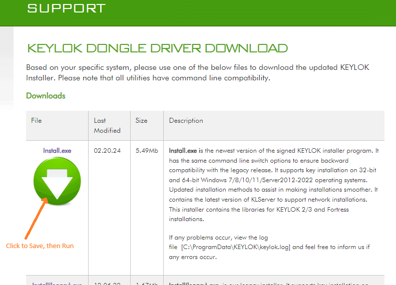 - Download the latest dongle utility from here: https://www.keylok.com/support/install-utility-download: